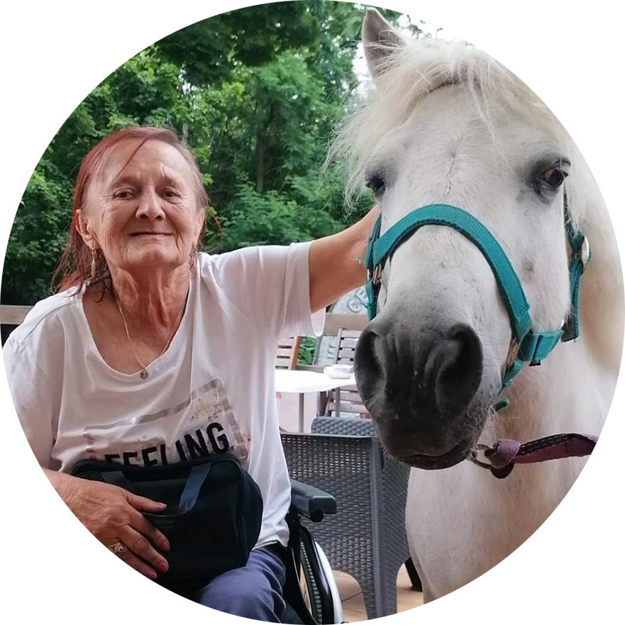 i ograniczenia, które za tym przyszły, Pani Teresa nie oczekiwała, że kiedykolwiek zobaczy z bliska konie – zwierzęta, które ją całe życie zachwycały. Wizyta w stadninie koni była dla niej cudowną niespodzianką, a kiedy kucyki odwiedziły nasze hospicjum, uśmiech nie schodził jej z twarzy.